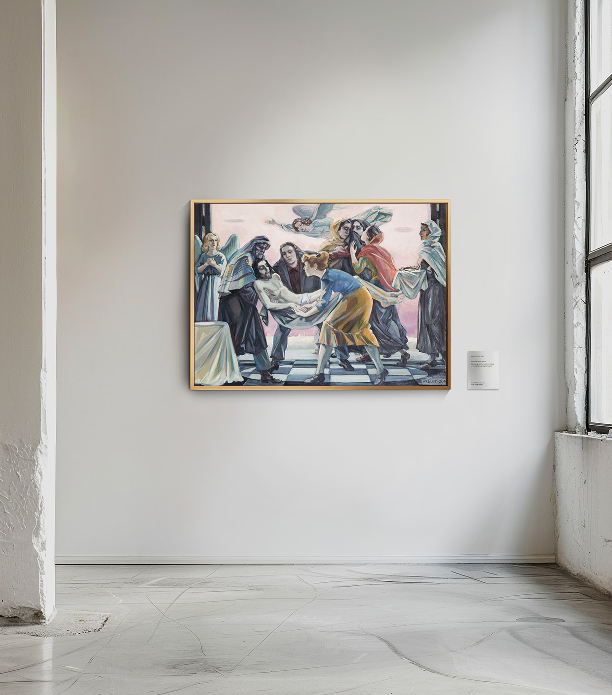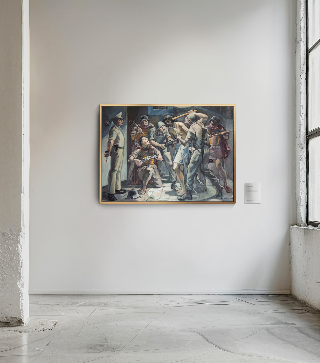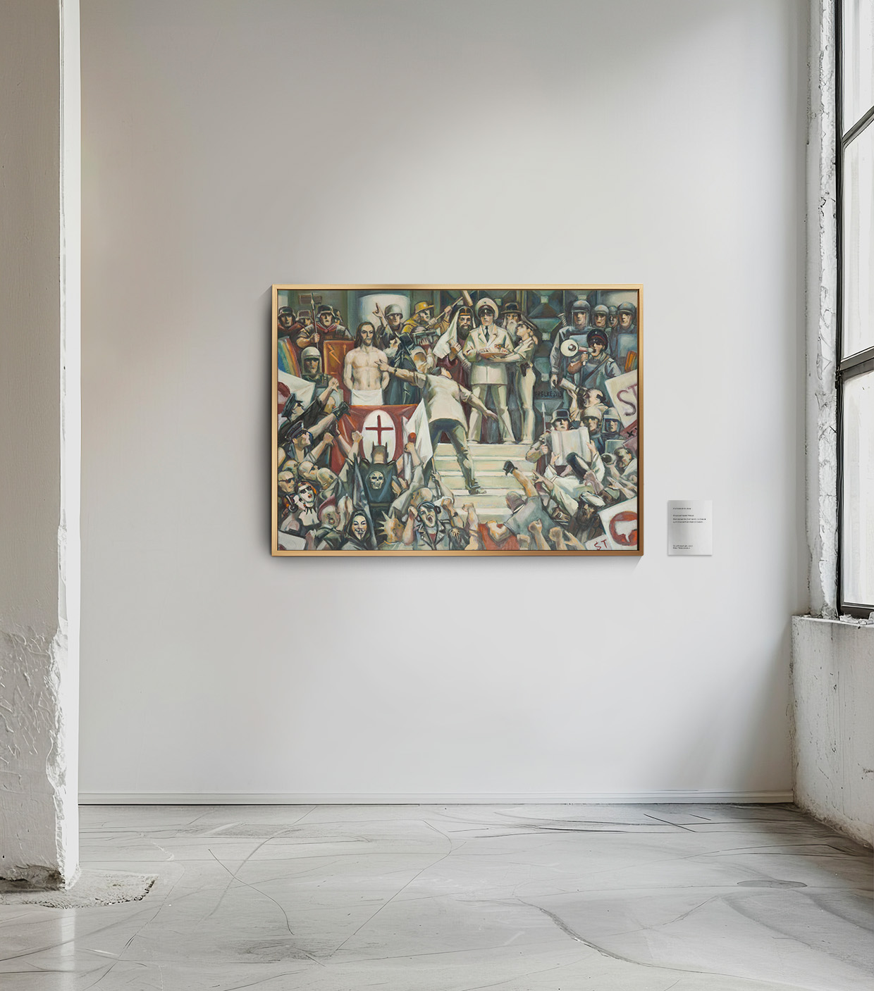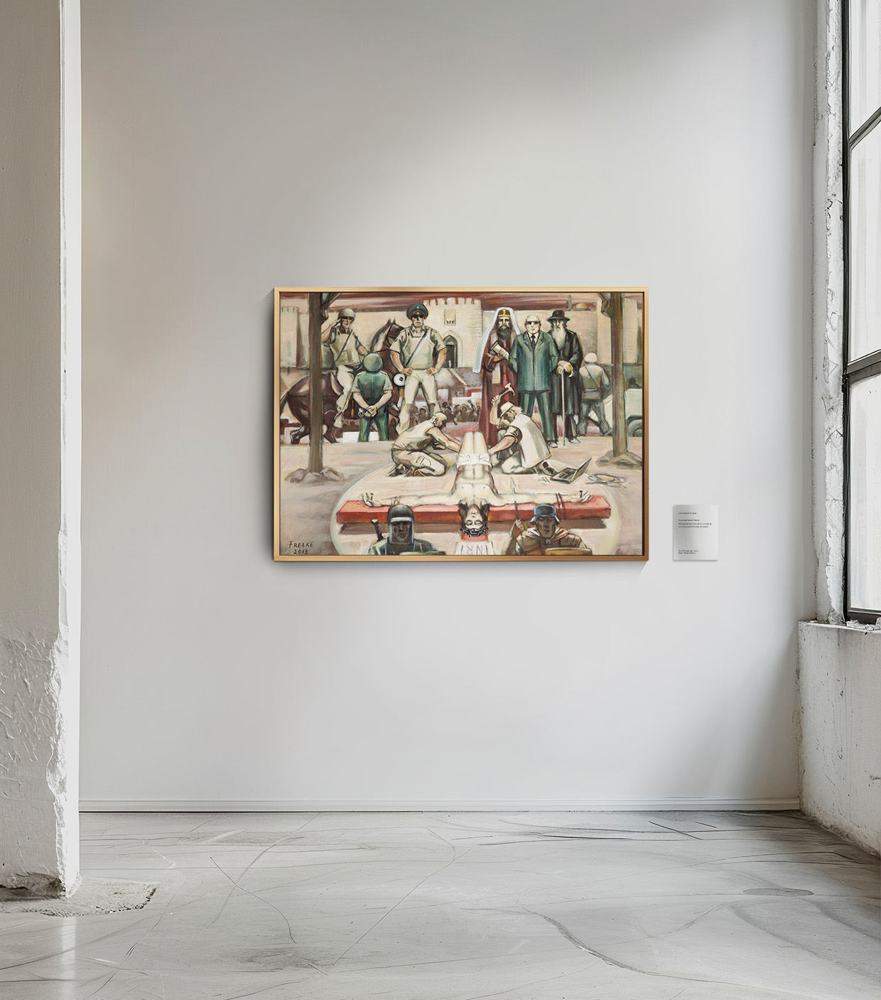 Helmut Frelkes Werke verbinden biblische Motive mit aktuellen gesellschaftlichen Themen und zeigen, wie universell und zeitlos der Leidensweg Christi ist. In urbanen Szenarien und modernen Symbolen spiegelt sich das Leiden der Menschheit wider, während das Antlitz Christi inmitten der heutigen Herausforderungen Hoffnung und Stärke ausstrahlt. Frelkes Interpretation lädt den Betrachter ein, über die Relevanz von Glaube, Mitgefühl und Erlösung in der modernen Welt nachzudenken.